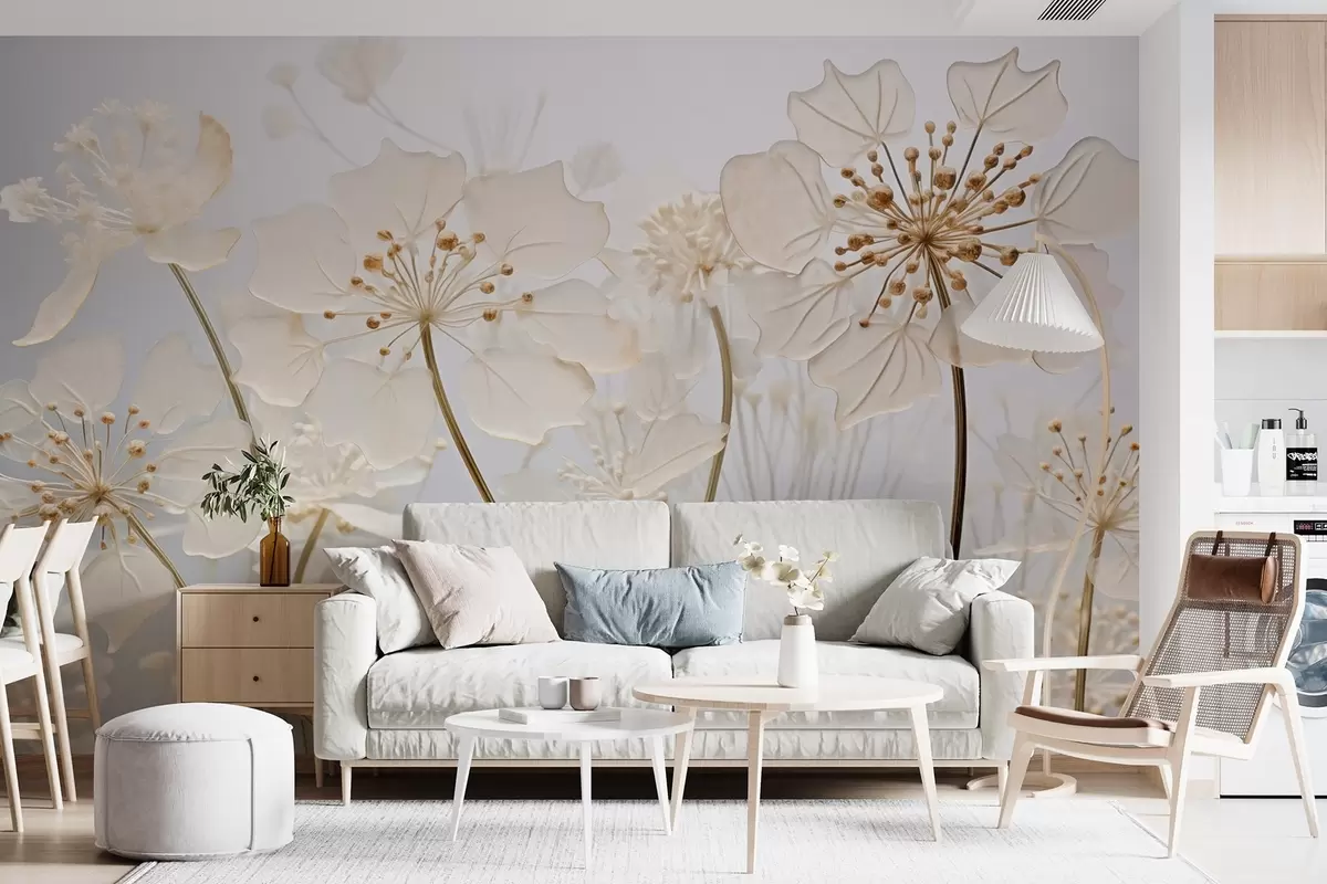 Peintures murales Fleurs sauvages délicates sur fond bleu Nr. w08932