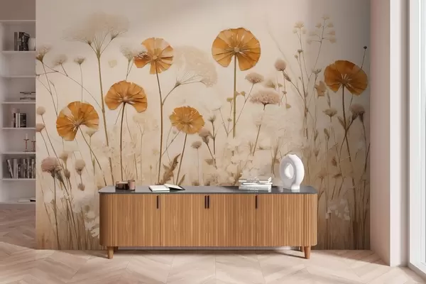 Peintures murales Fleurs sauvages aux teintes jaunes dans des tons chauds Nr. w08994