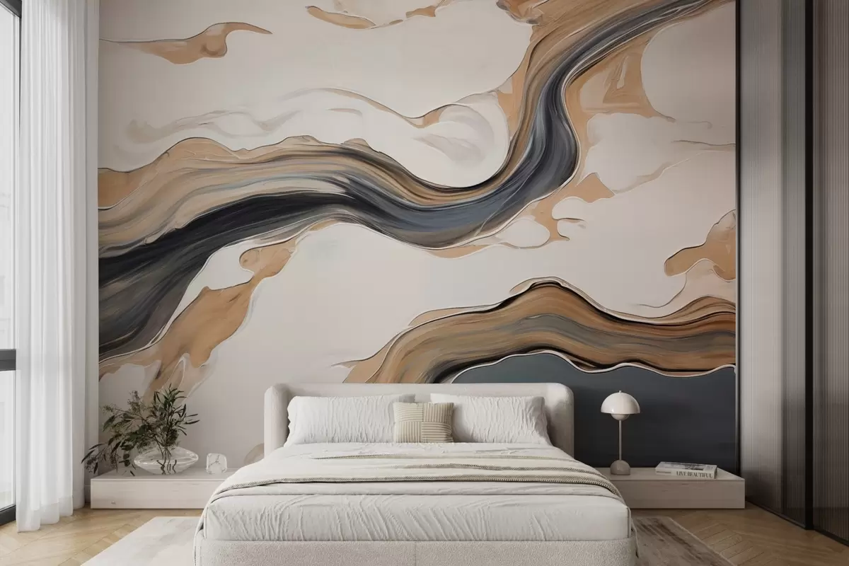 Peintures murales Traces brun-gris en forme de vagues Nr. w09001