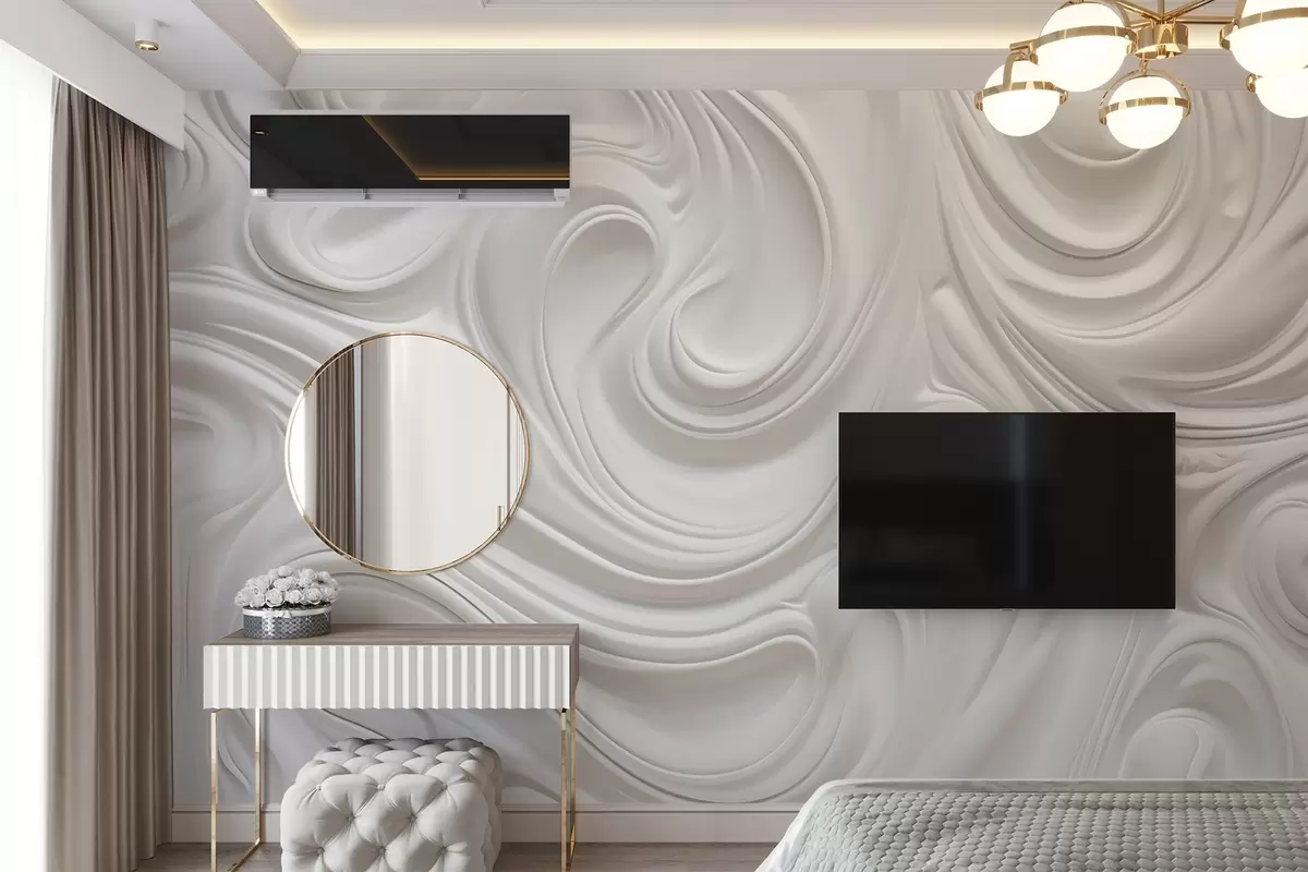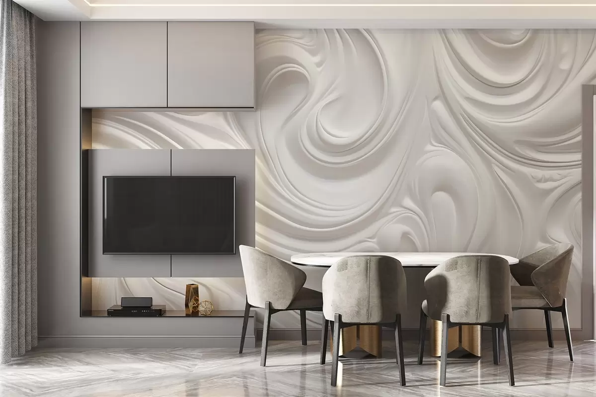 Peintures murales Art moderne abstrait blanc avec des tourbillons et des vagues fluides, texture lisse, design élégant, esthétique minimaliste Nr. w09059