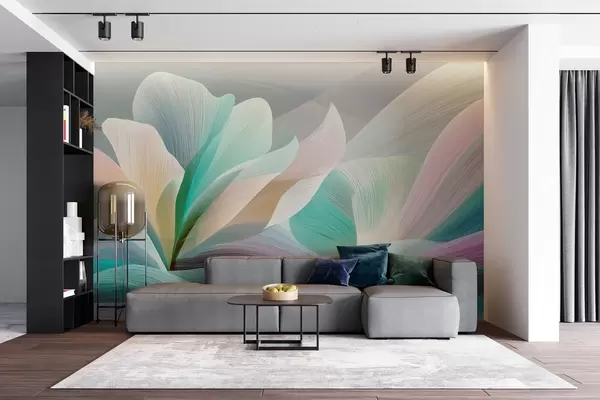 Peintures murales Abstraction élégante avec des courbes douces ressemblant à une fleur et à des vagues Nr. w09075
