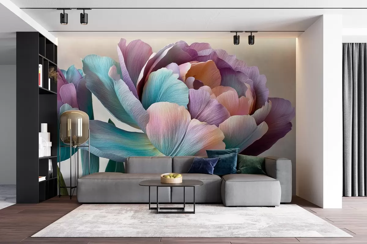 Peintures murales Fleur colorée dans le style du papier crépon Nr. w09076