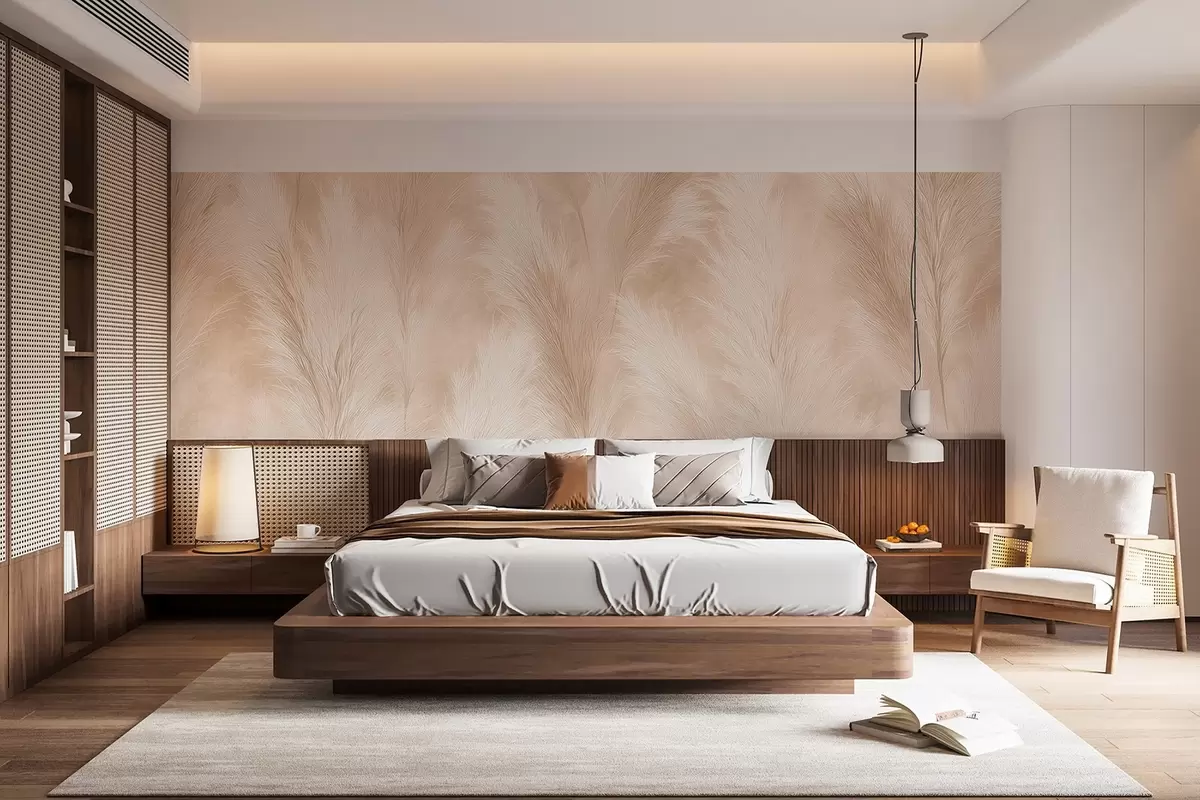 Peintures murales Herbe de la pampa dans les tons beige et rose Nr. w09077