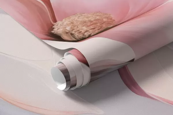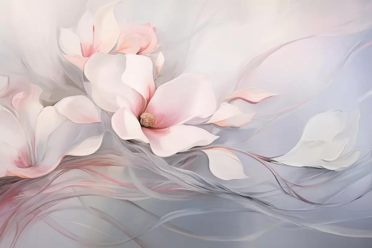 Peintures murales Délicates fleurs de magnolia aux pétales roses et aux feuilles blanches, texture lisse, lignes fluides Nr. w09165
