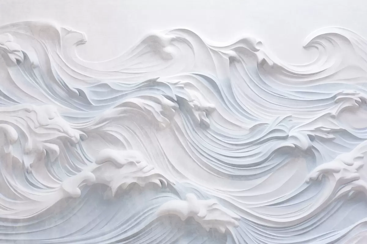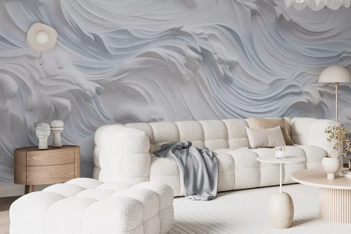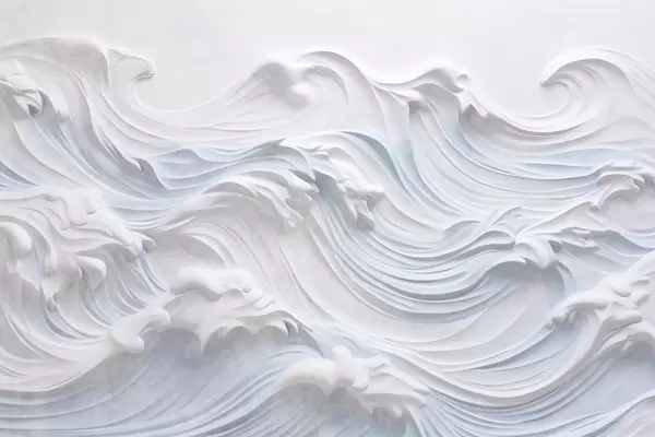 Peintures murales Vagues océaniques abstraites texturées, blanches et bleu clair, avec de l'écume, s'écoulant de gauche à droite, impression dynamique et texturée Nr. w09266