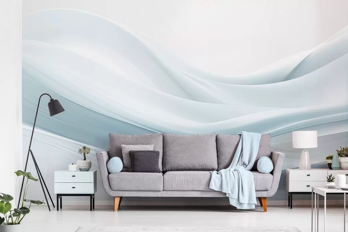 Peintures murales Vagues en tissu bleu dans un style abstrait minimaliste Nr. w09279v2
