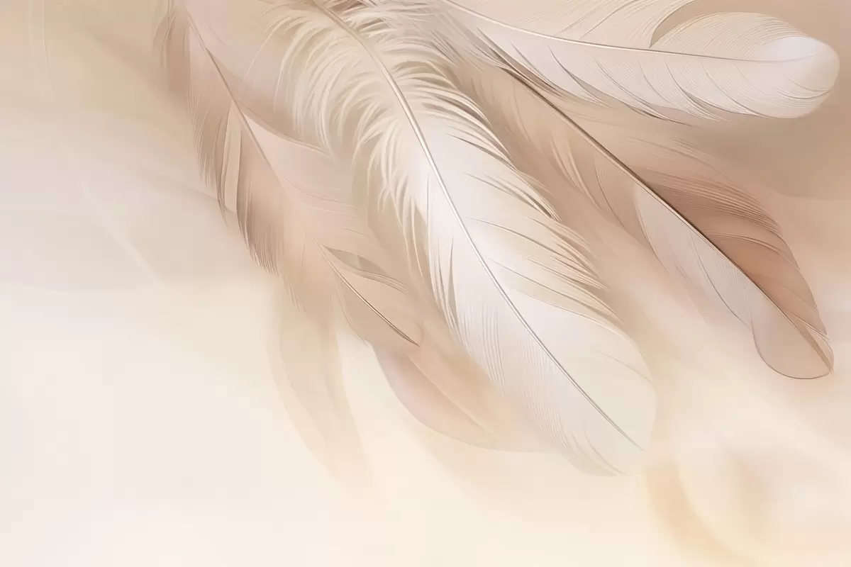 Peintures murales Des plumes en apesanteur dans une douce brume de tons chauds Nr. w09286