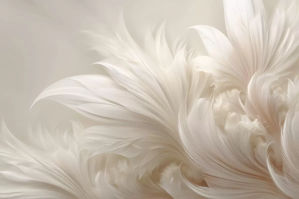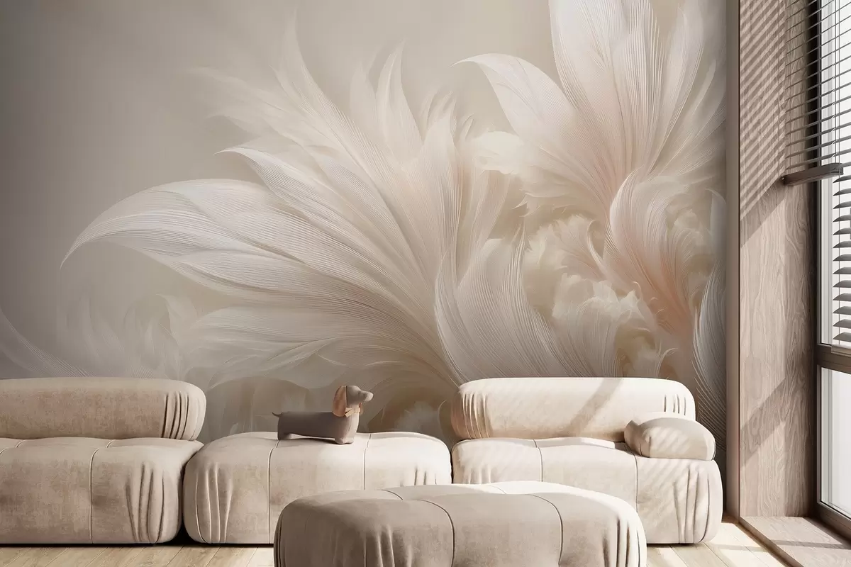 Peintures murales Plumes en apesanteur dans les tons crème vanille Nr. w09302
