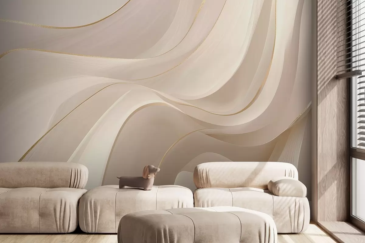 Peintures murales Vagues fluides aux accents jaunes dans une lumière crémeuse Nr. w09303
