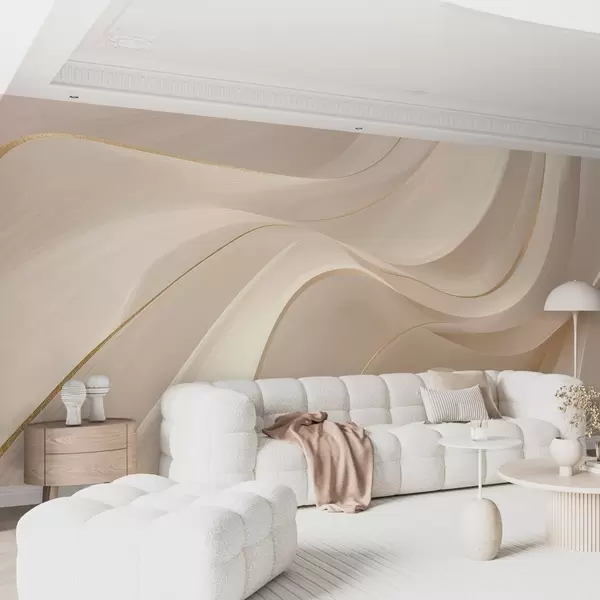 Peintures murales Vagues fluides aux accents jaunes dans une lumière crémeuse Nr. w09303
