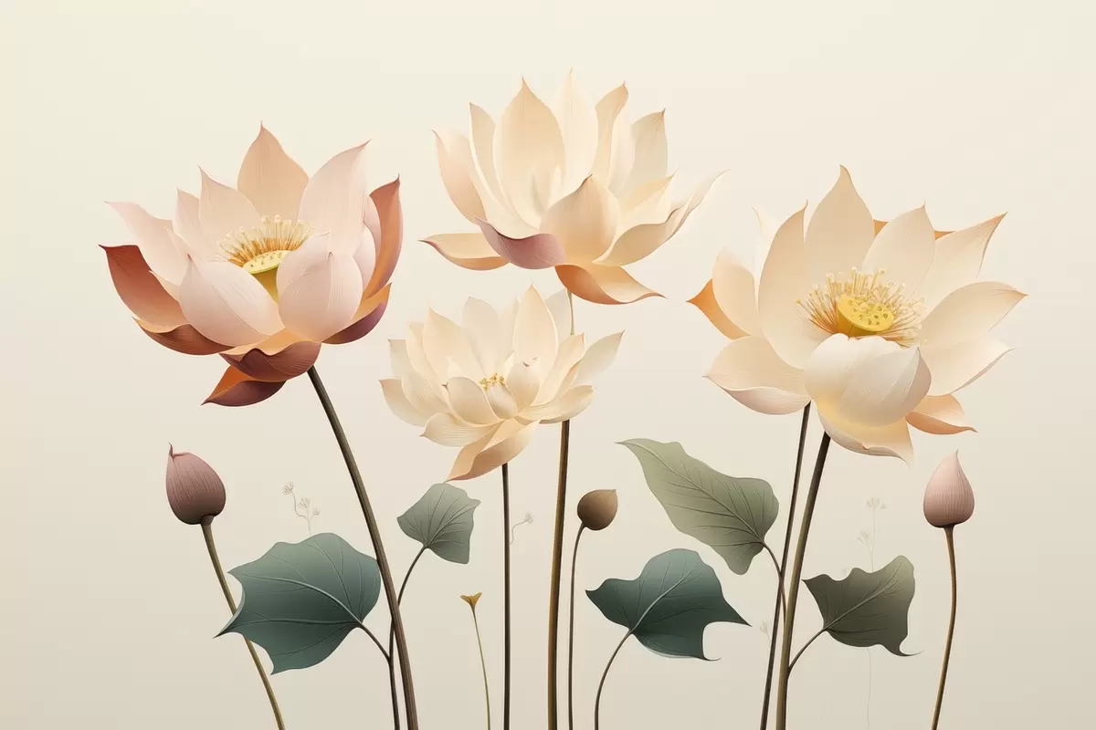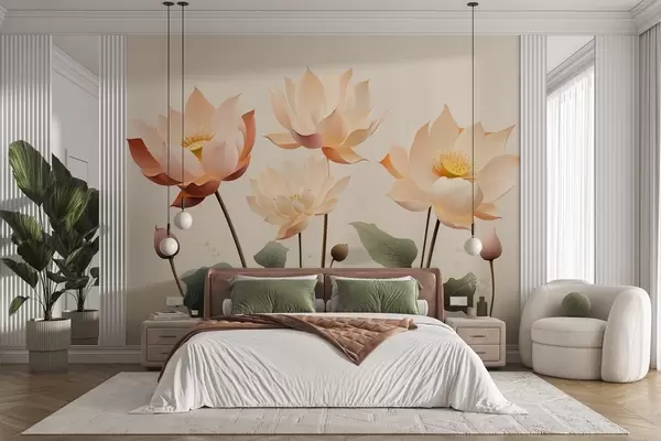 Peintures murales Fleurs de lotus élégantes dans une douce palette de couleurs pastel Nr. w09306