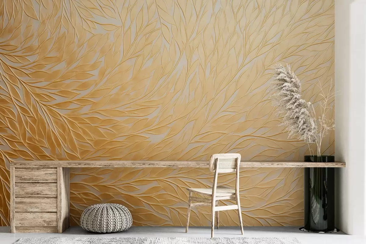 Peintures murales Motif de feuilles gaufrées dans des tons chauds de jaune miel Nr. w09325