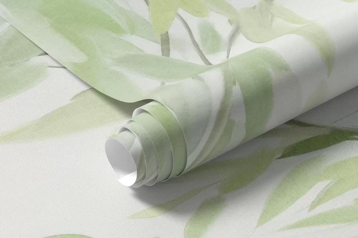 Peintures murales Branches de saule pleureur avec feuilles vertes pendantes, coups de pinceau doux et délicats, style aquarelle Nr. w09365