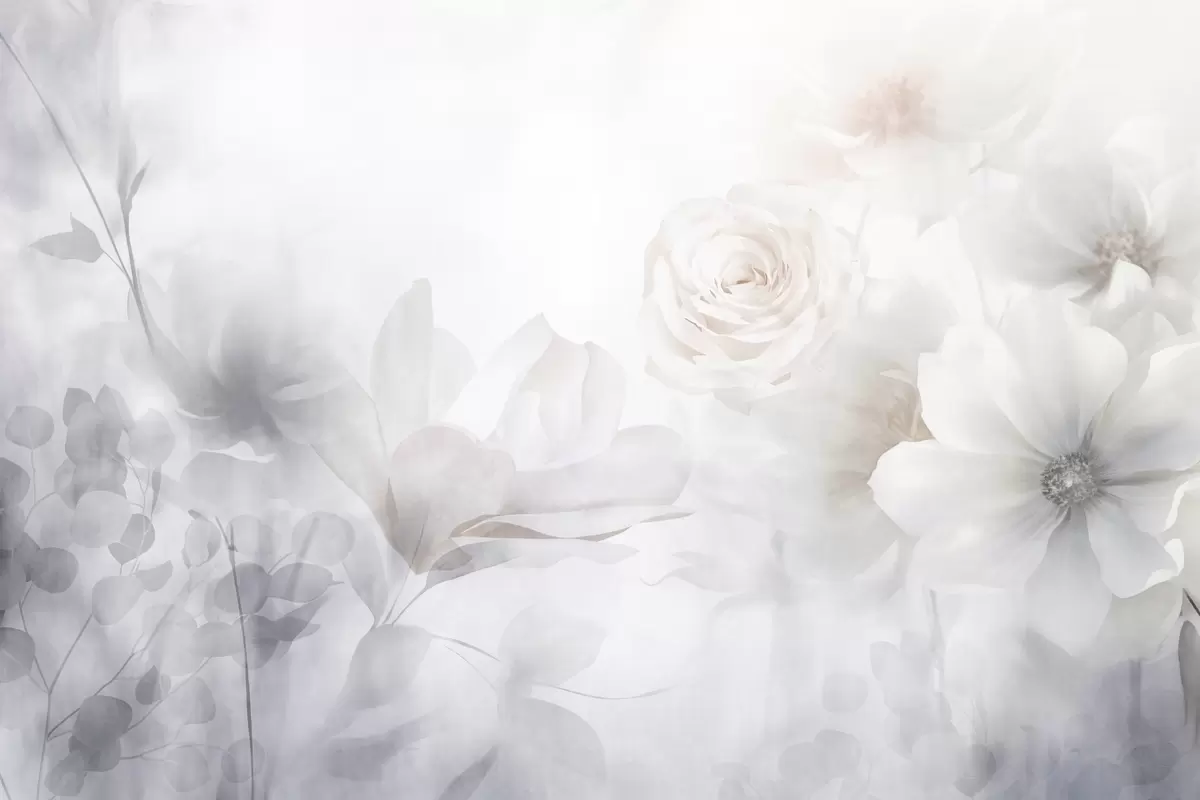 Peintures murales Arrangement floral abstrait délicat avec des roses rose pastel et des magnolias, mise au point douce, arrière-plan gris clair Nr. w09371