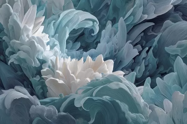 Peintures murales Danse des pétales et des vagues de l'océan dans des tons bleus Nr. w09454