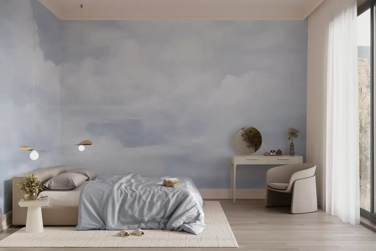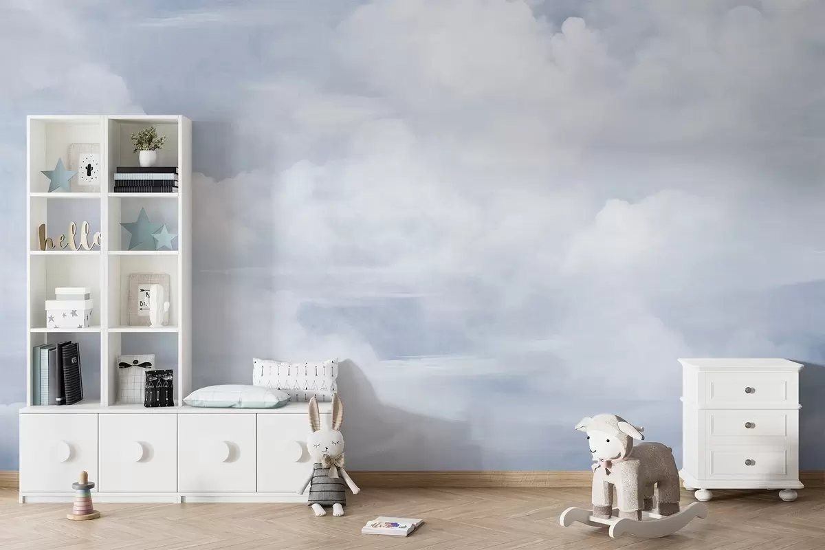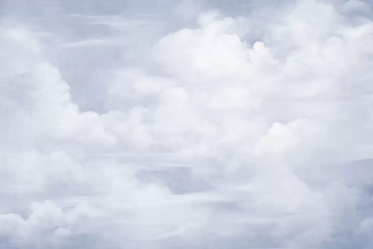 Peintures murales Ciel pastel texturé rempli de nuages blancs, à l'esthétique douce et minimaliste. Nr. w09589