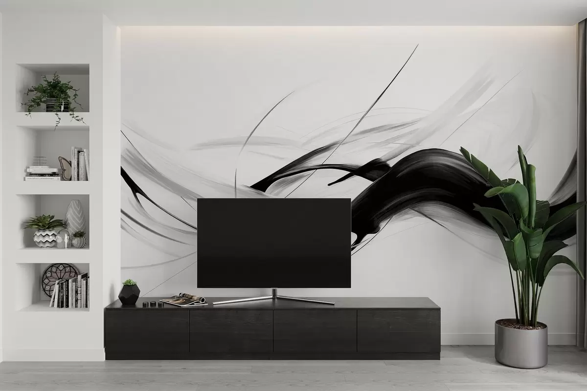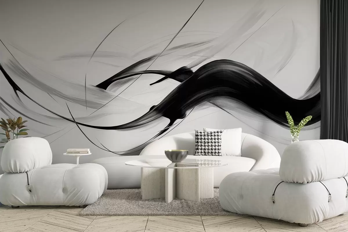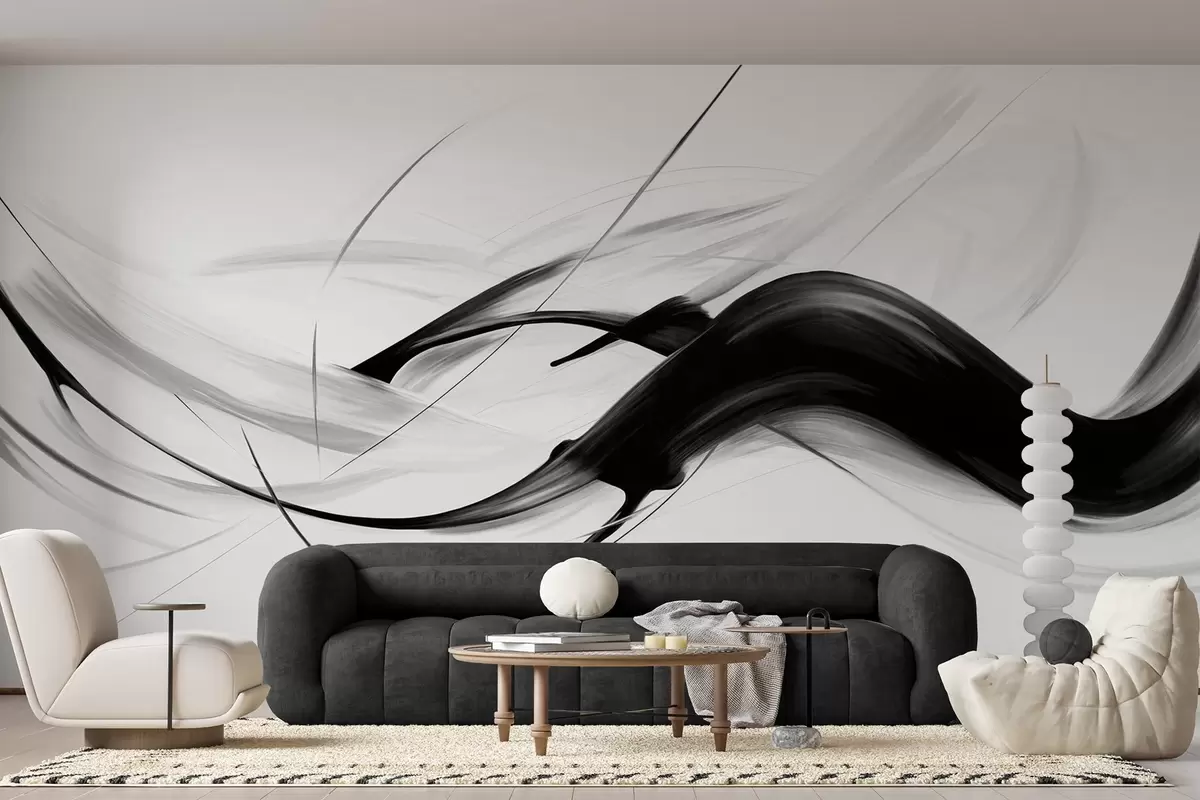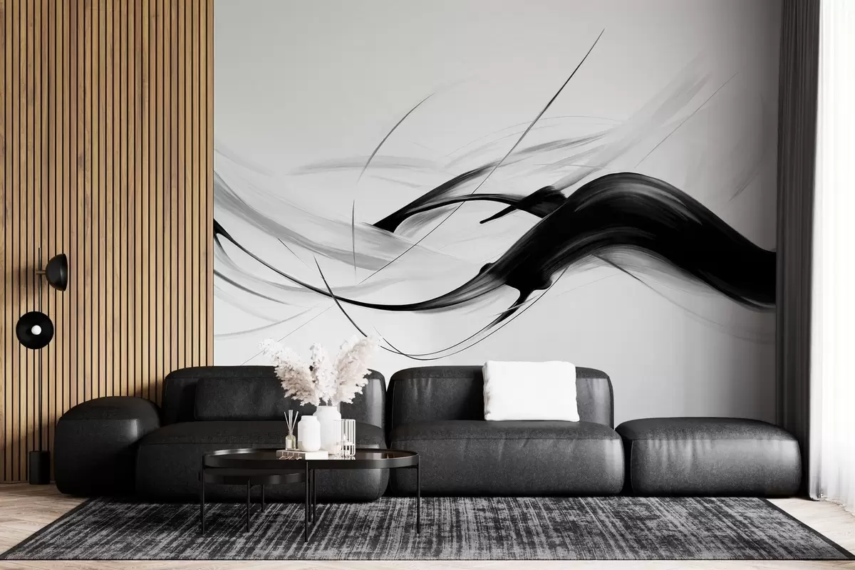 Peintures murales Des traits abstraits en noir et blanc avec des lignes fines créent un design moderne sur fond clair. Nr. w09605