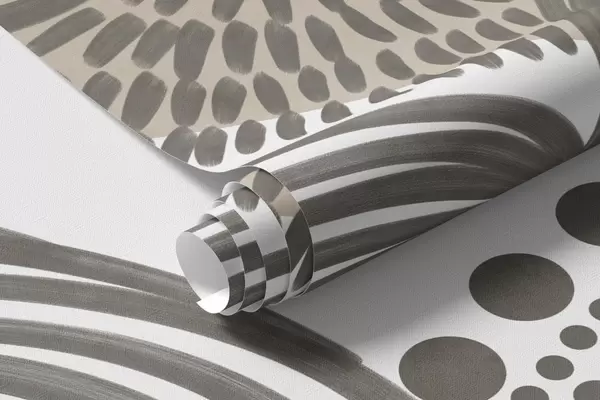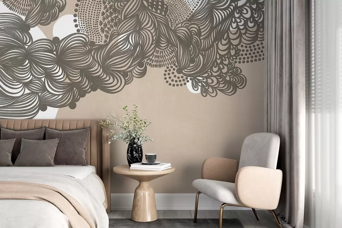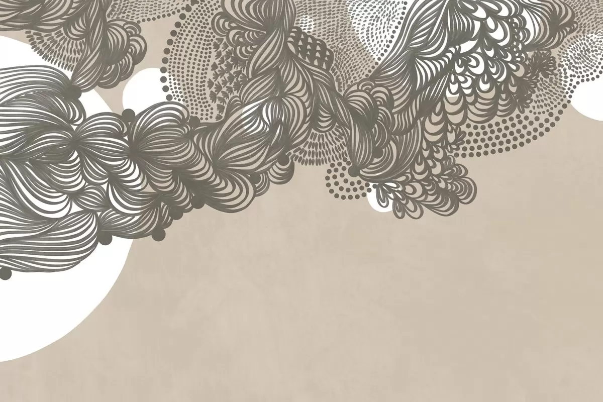 Peintures murales Motif abstrait texturé sur fond beige, avec des lignes complexes et des textures pointillées. Nr. w09621