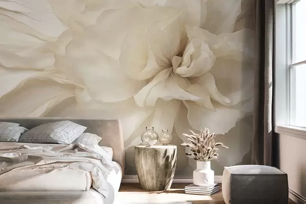 Peintures murales Fleur délicate et texturée, de couleur claire, aux pétales translucides, sur fond abstrait doux. Nr. w09632