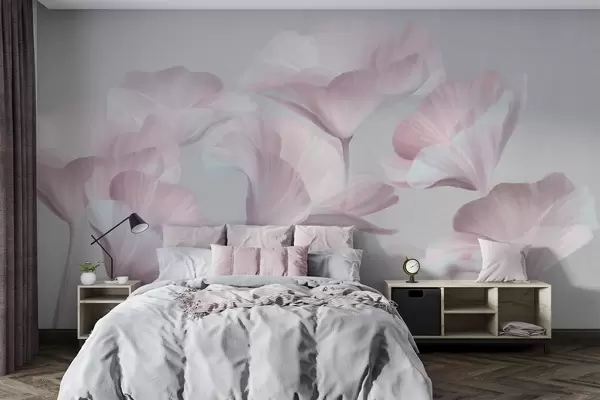 Peintures murales Fleurs de lotus translucides texturées rose pâle aux pétales délicats sur fond gris discret Nr. w09640v1