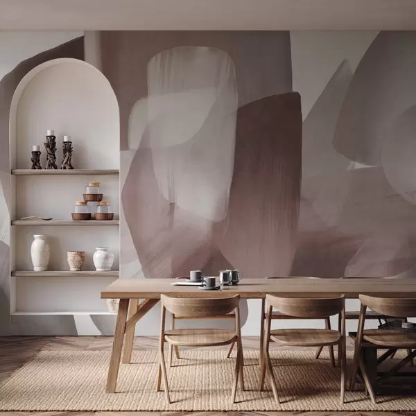 Peintures murales Formes abstraites texturées dans des tons bordeaux et gris discrets, aux contours flous et aux couches superposées. Nr. w09642v2
