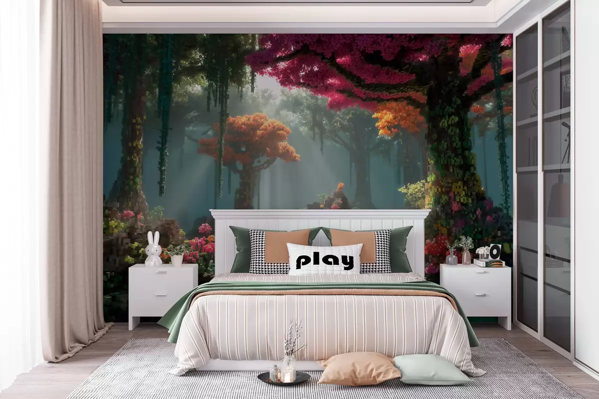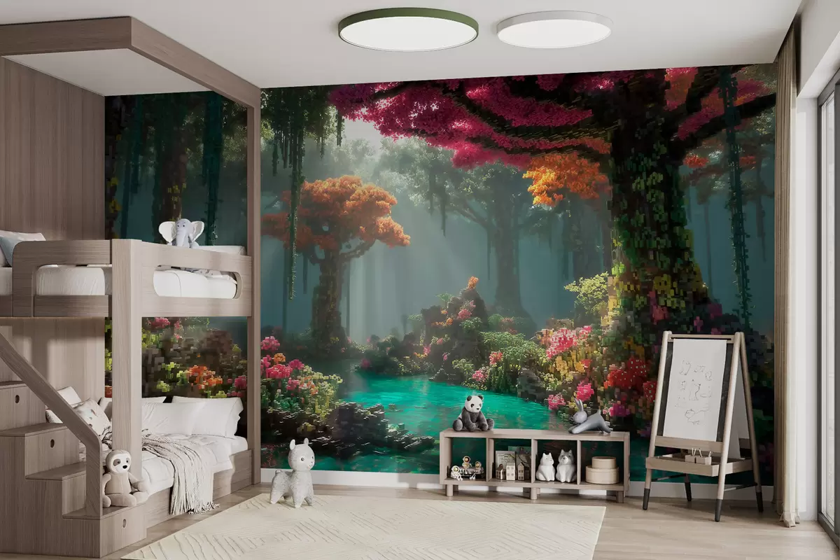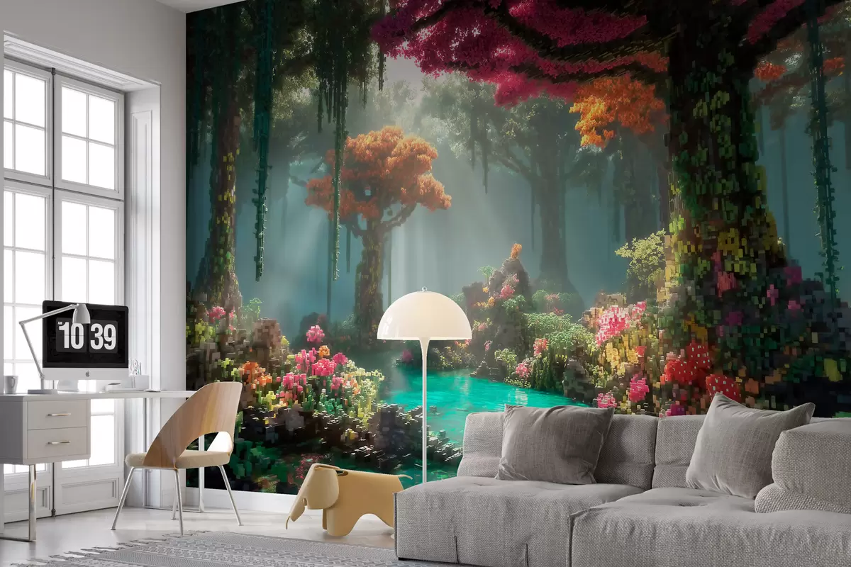 Peintures murales Une clairière de la forêt enchantée en pixels inspirée des jeux vidéo Nr. w09683