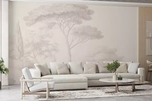 Peintures murales Paysage forestier paisible dans une palette de couleurs beiges Nr. w09685
