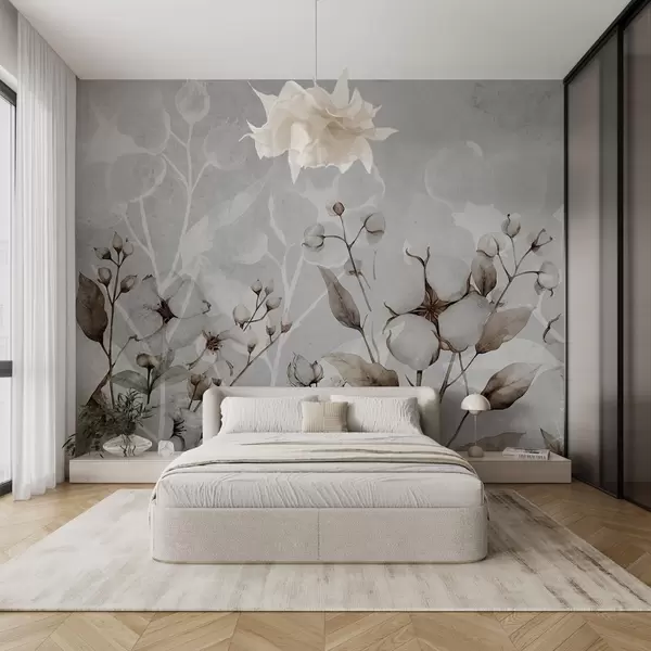 Peintures murales Grandes fleurs de coton sur fond gris clair Nr. w09691