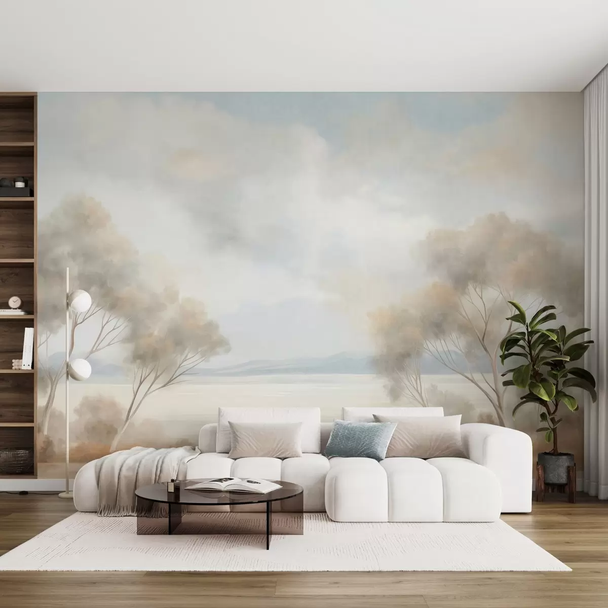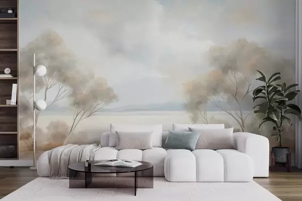 Peintures murales Une peinture de paysage texturée représentant des arbres sous un ciel nuageux Nr. w09753