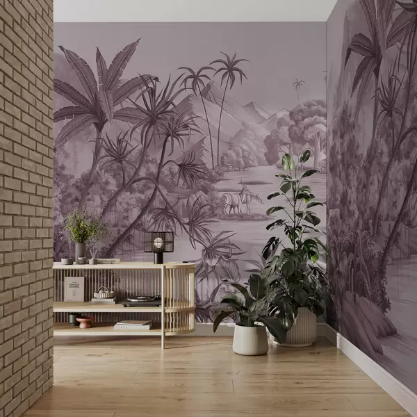 Wall murals Black and white tropics in purple colors Nr. u59040v3