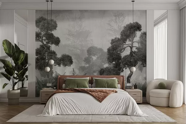 Wall murals Tropical trees and leaves in a misty forest Nr. u95901