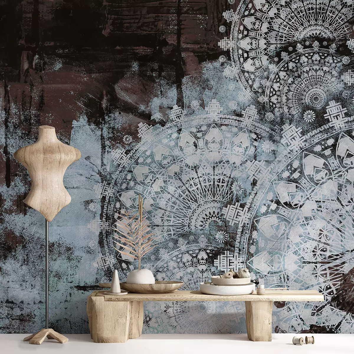 Wall murals Vintage mandala in blue colors Nr. u93958v1