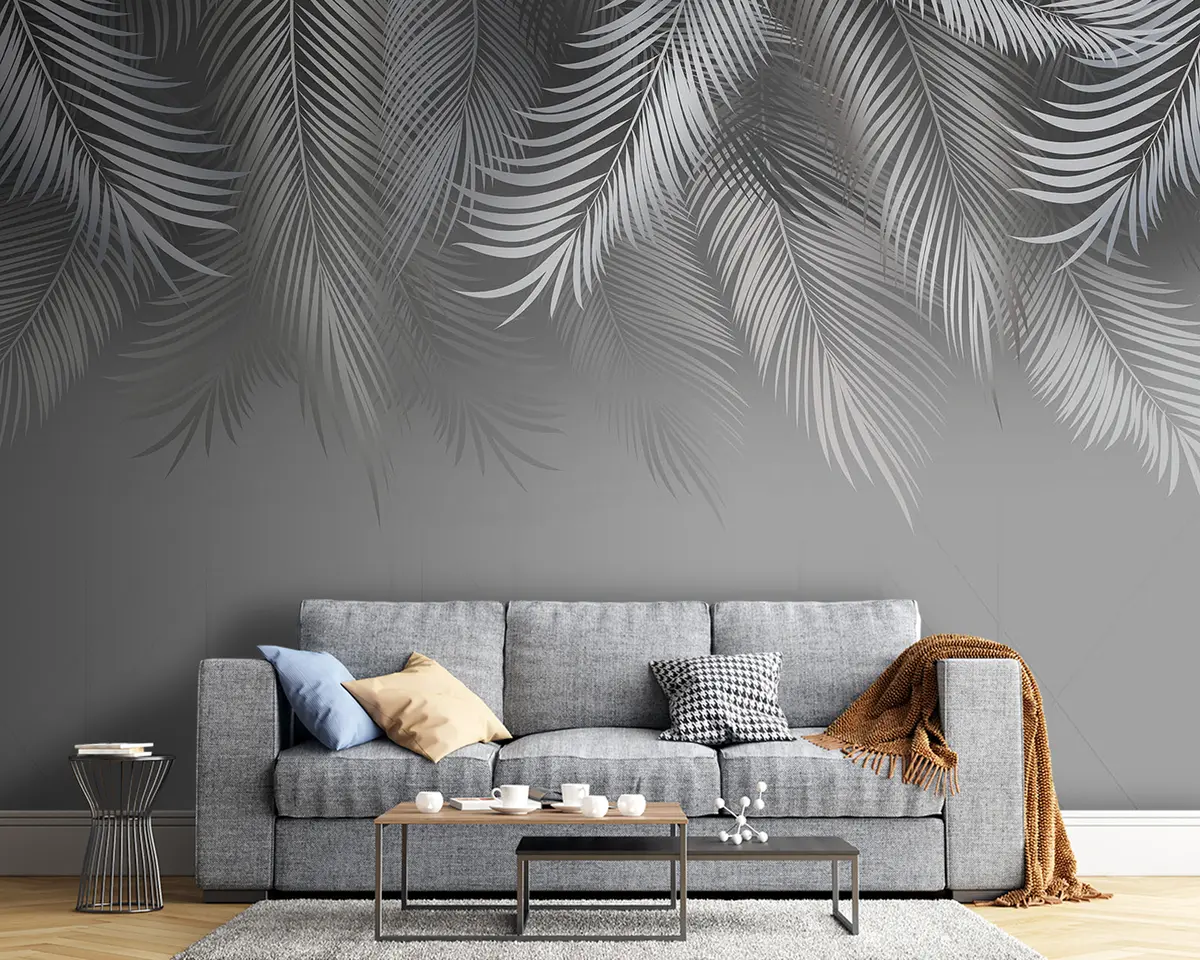 Wall murals Tropical leaves and translucent geometric background Nr. u94962