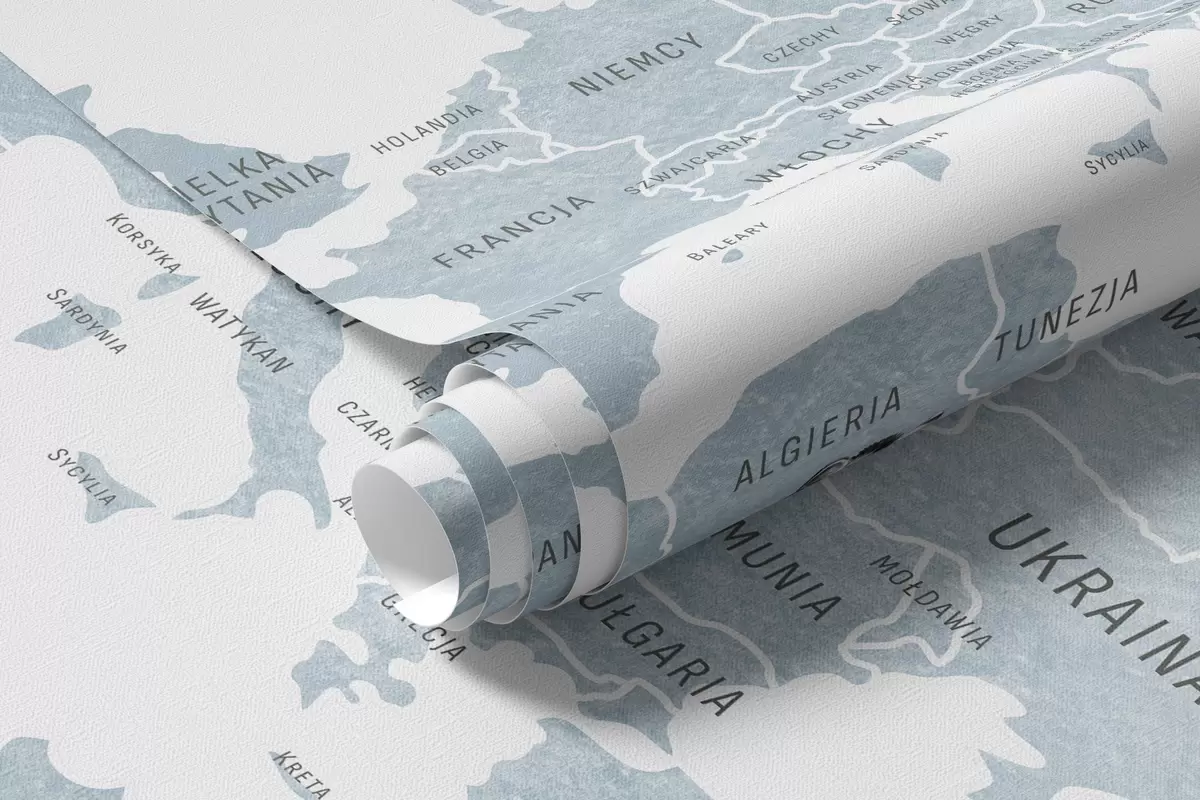 Wall murals Children's map in watercolour style with animals and hot air balloons. Polish language. Blue colour. Nr. c00001plv1