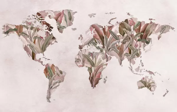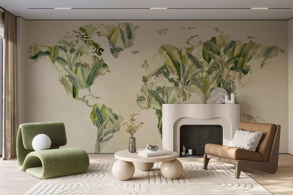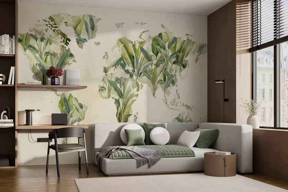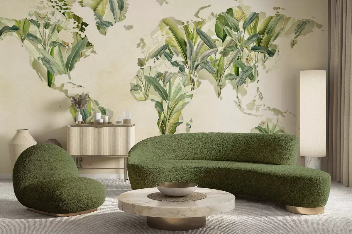 Wall murals A green map of the world made from banana leaves Nr. c00007