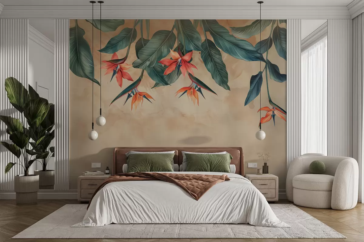 Wall murals Tropical bloom on beige watercolor background Nr. w01485