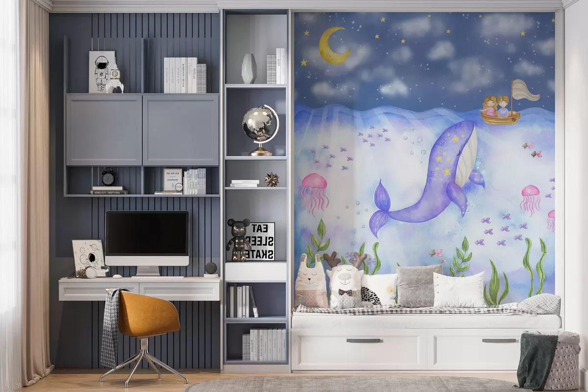Wall murals Whale swims beneath a starry night Nr. w01965