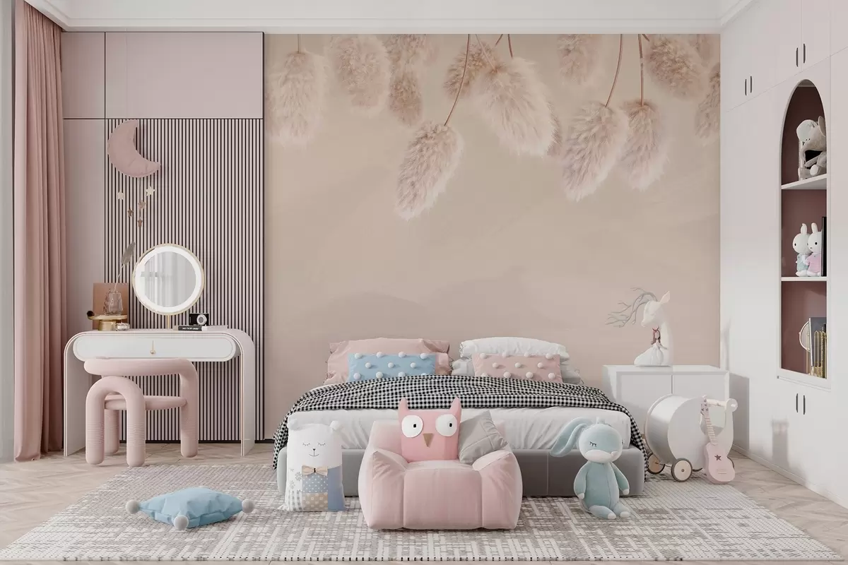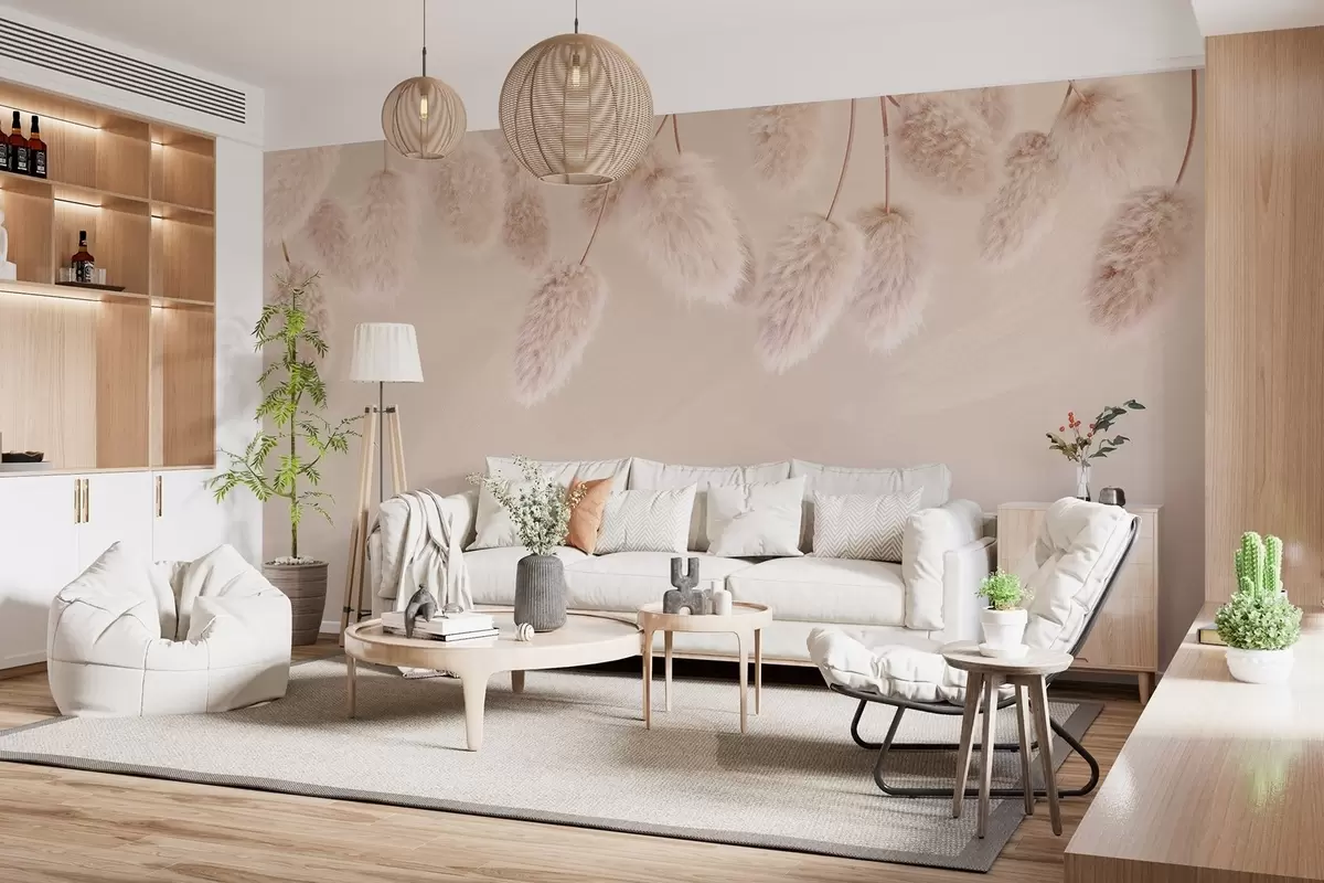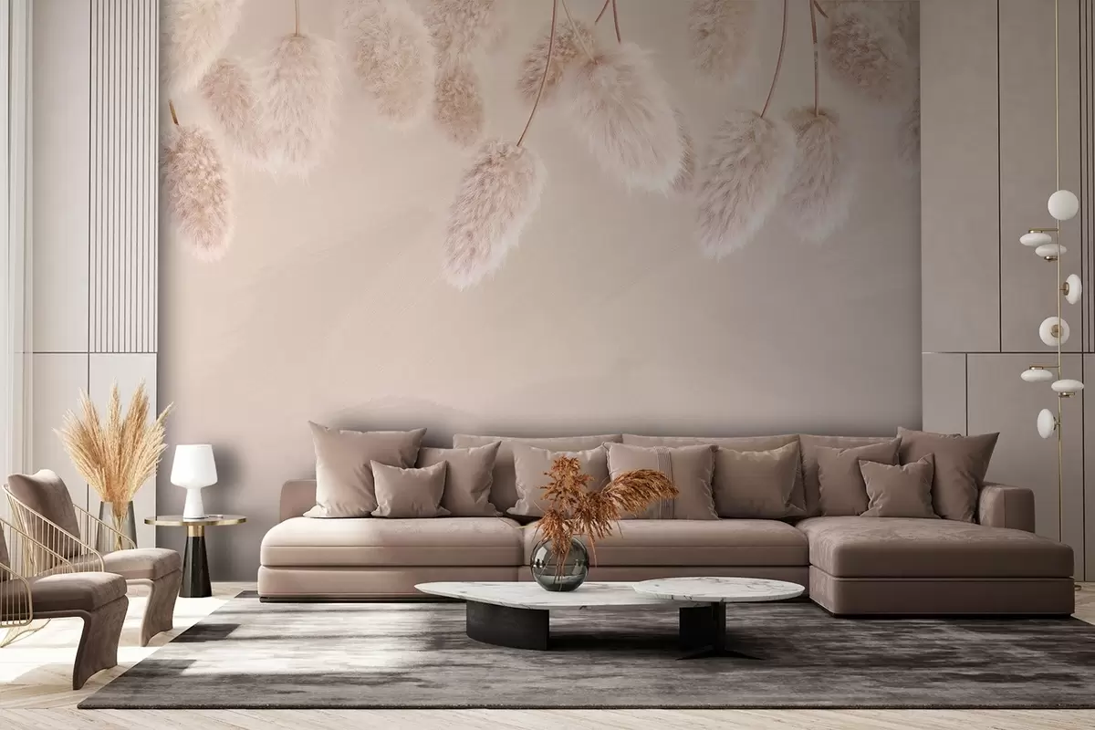 Wall murals Gentle clouds of lagurus against a background of soft pink strokes Nr. w02071
