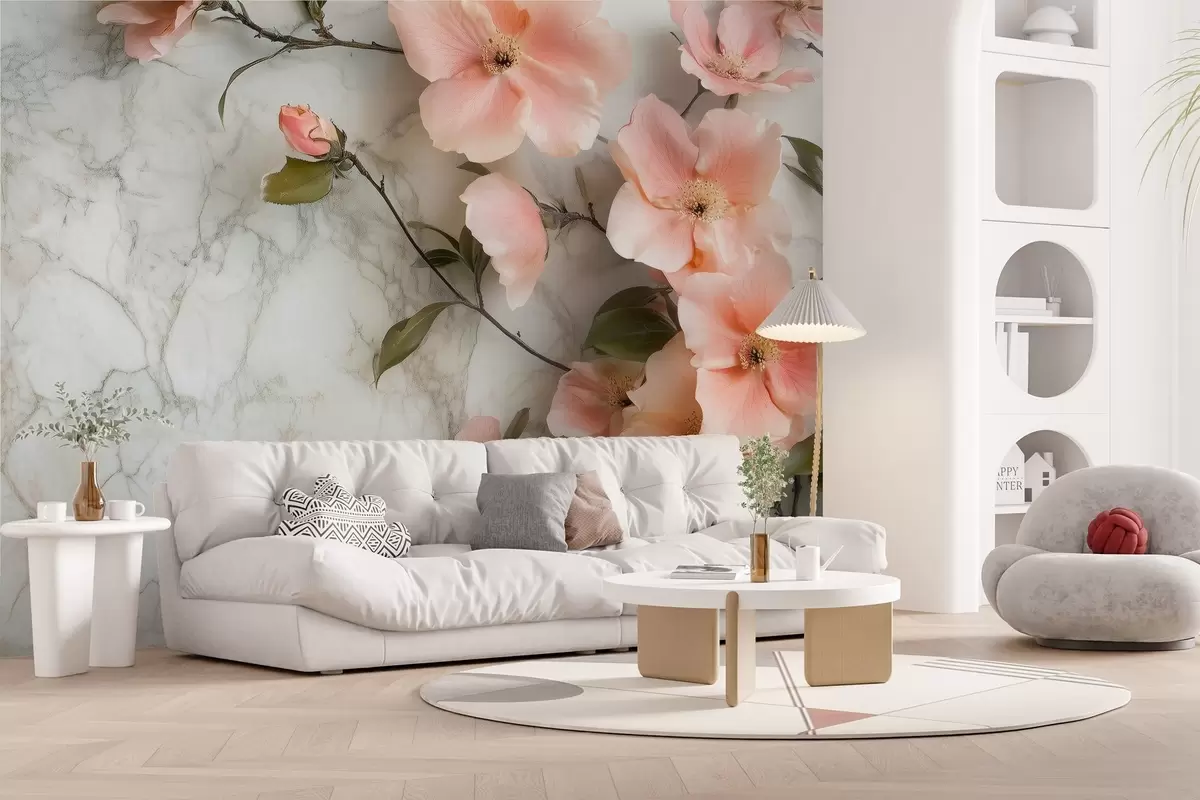 Wall murals Delicate flowers on the background of marble imitation Nr. w02291