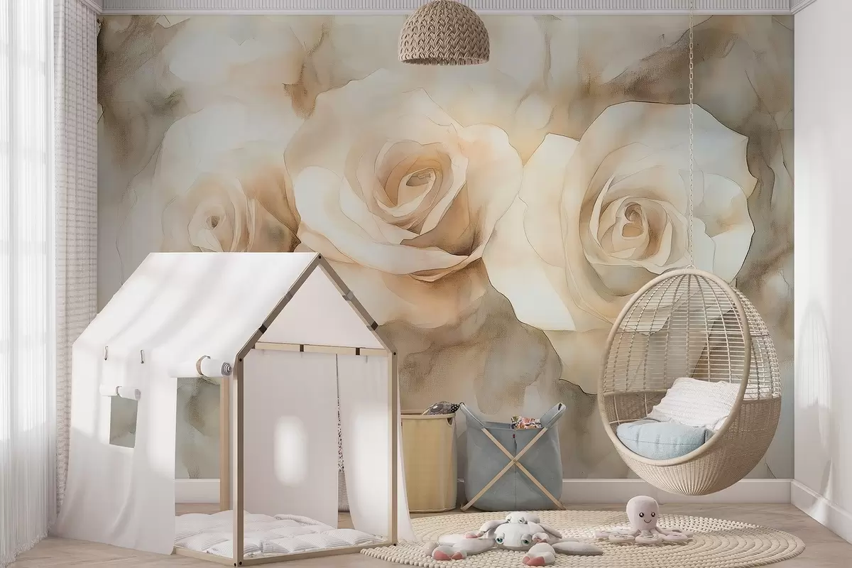 Wall murals Beautiful roses, watercolor style, beige colors, bohemian Nr. w02492