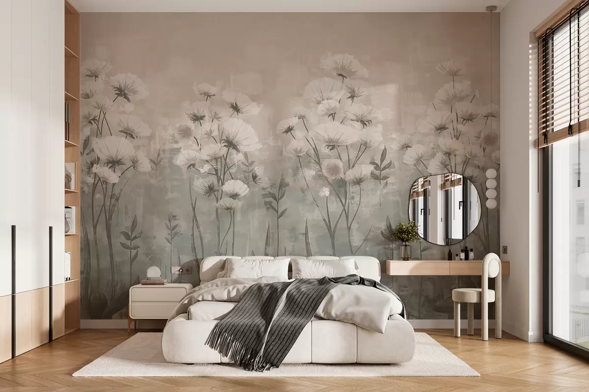 Wall murals Delicate wildflowers with brushstroke effect in pastel colours Nr. w02629v2
