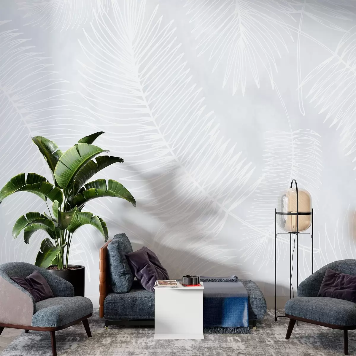 Wall murals White leaf silhouettes on a textured background Nr. w02894v1