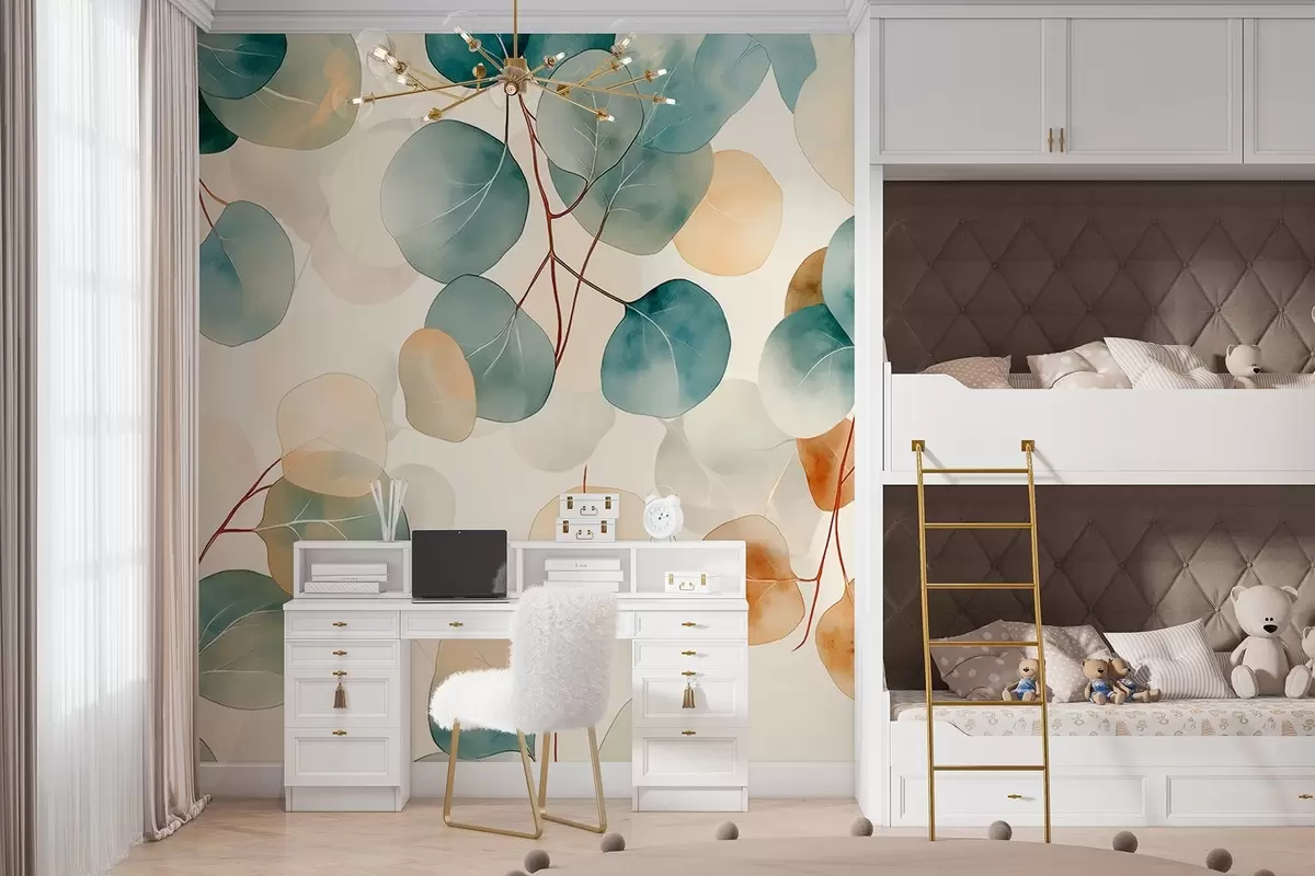 wall murals Watercolor style eucalyptus drawing, soft pastel colors, floral w02938