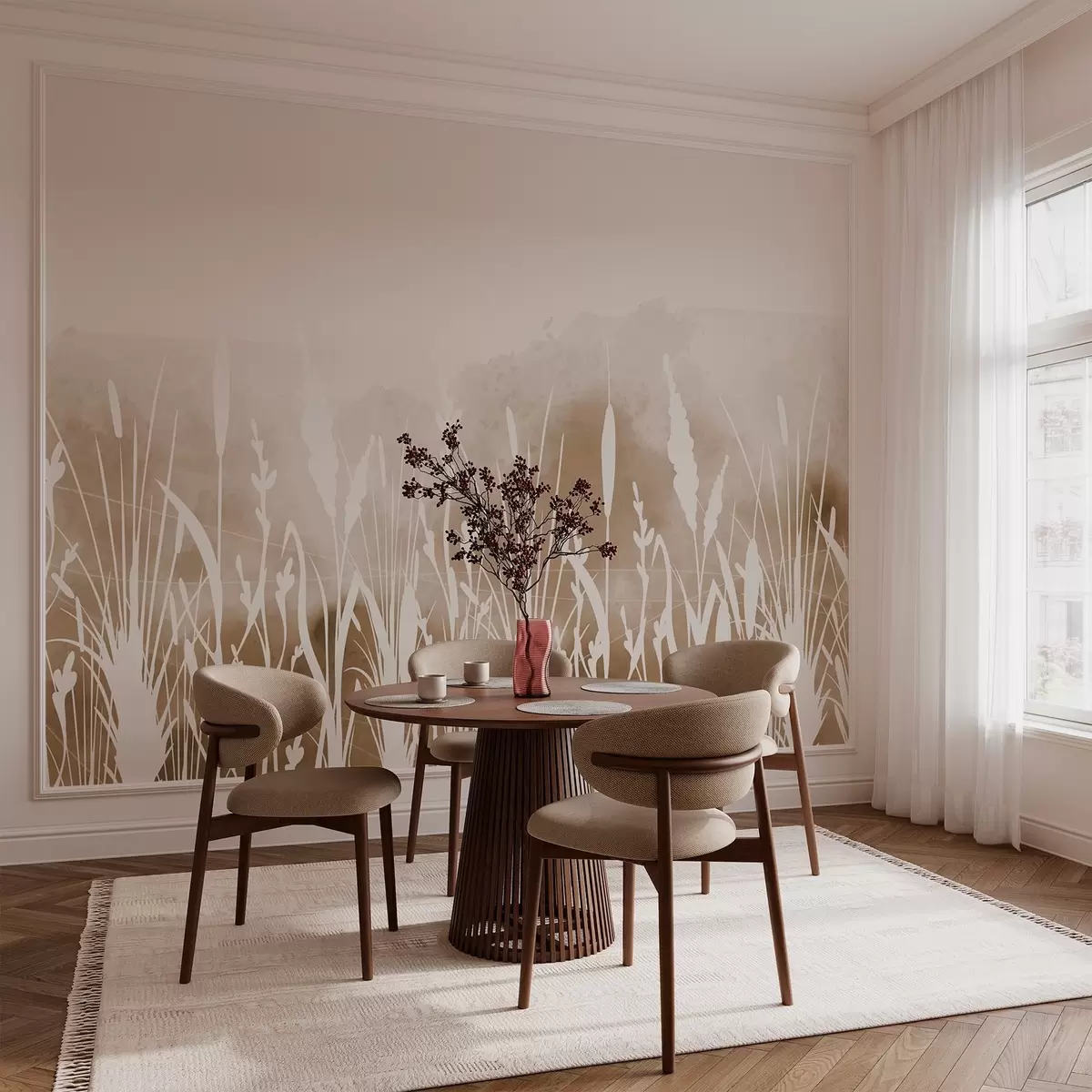 Wall murals Silhouettes of meadow plants on light background Nr. w03134