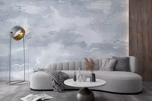 Wall murals Mandalas on the pastel background, vivid brush strokes, blue colors Nr. w03409v1