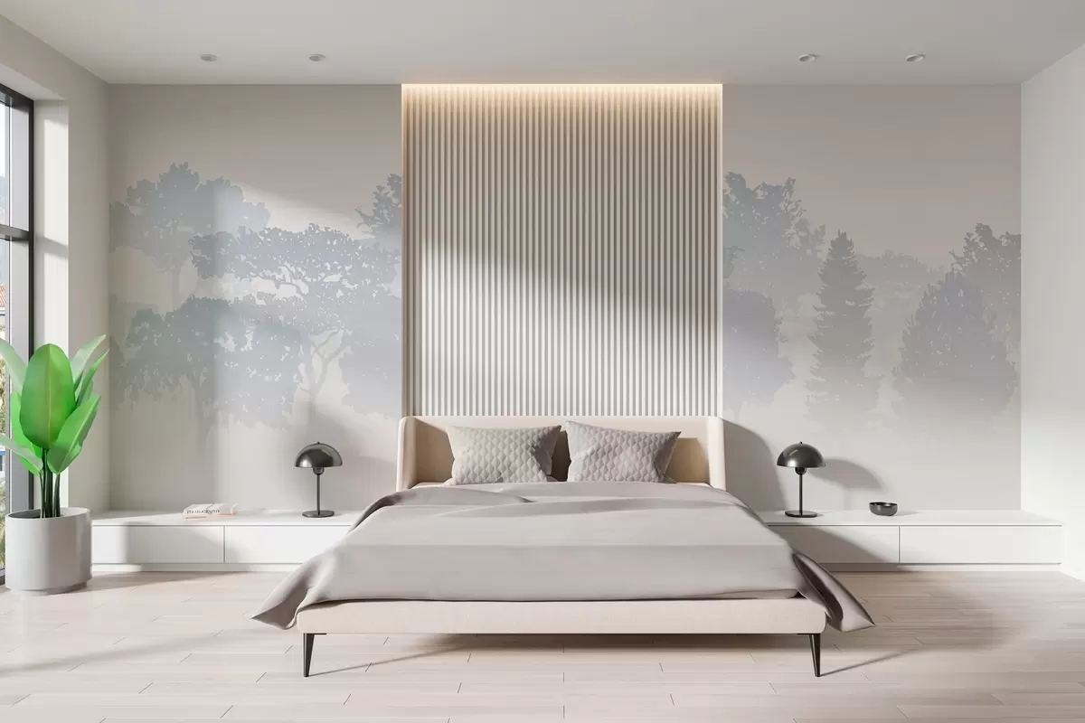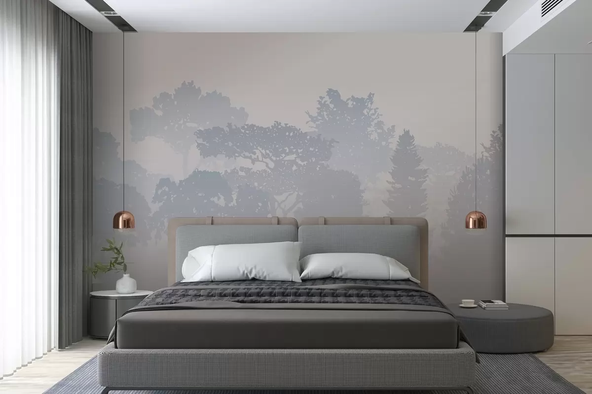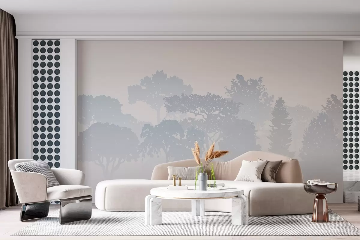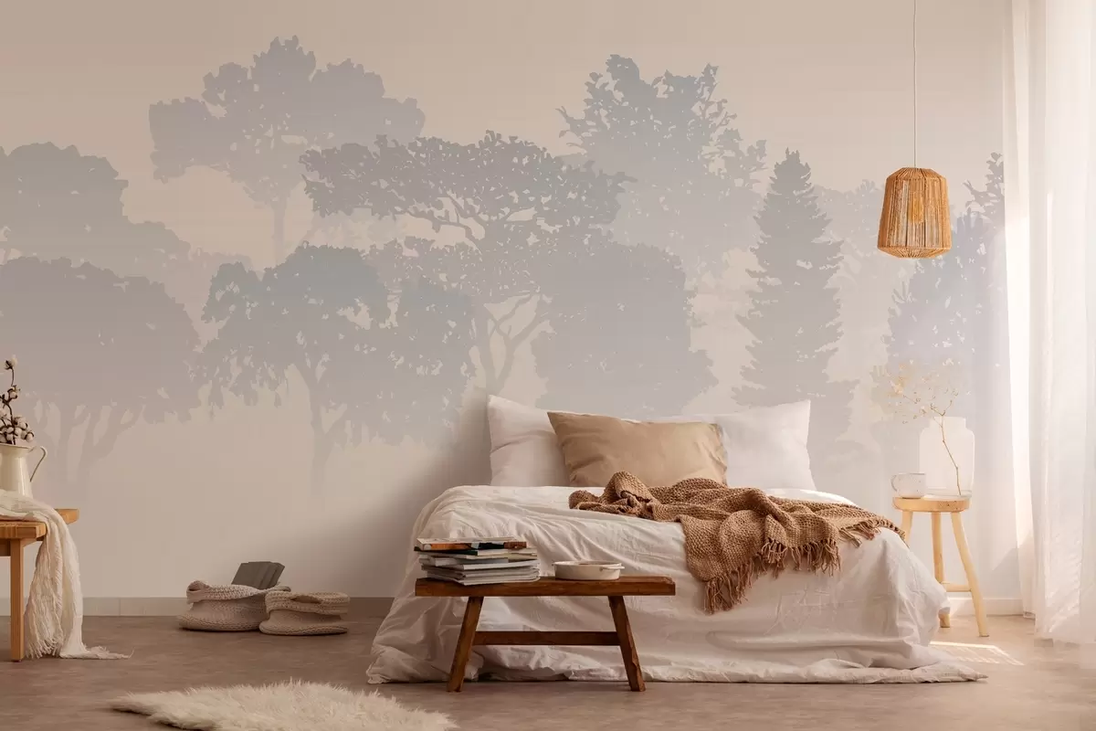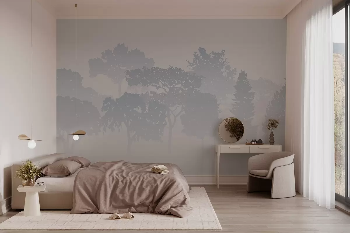 Wall murals silhouettes of trees in the haze of fog Nr. w03451