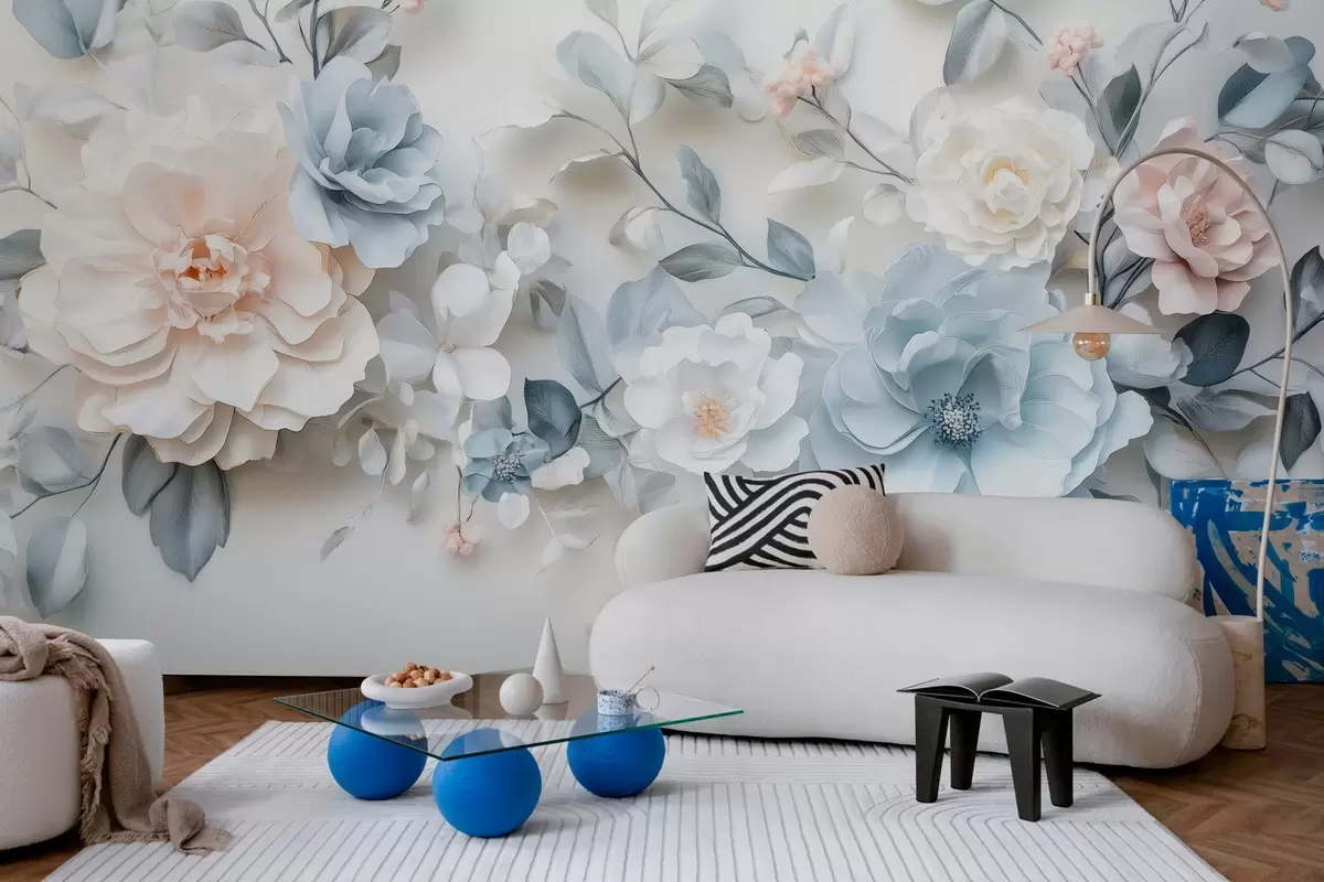Wall murals delicate airy flowers with a volume effect in the style of oil painting Nr. w03457