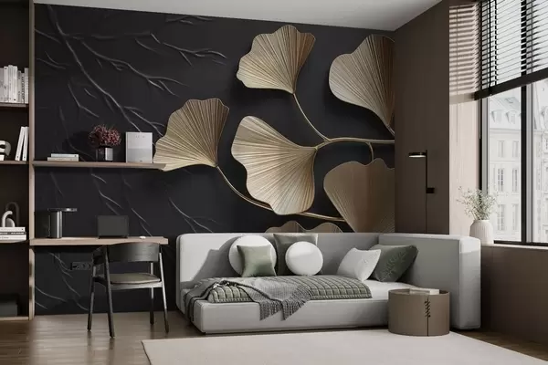 Wall murals Volumetric foliage on a dark wall Nr. w03650v1