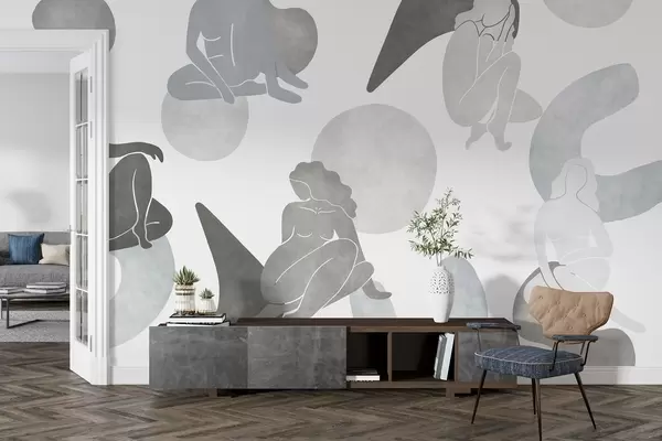 Wall murals Geometric abstractions with women silhouettes, boho style, grey colors Nr. w03753v5