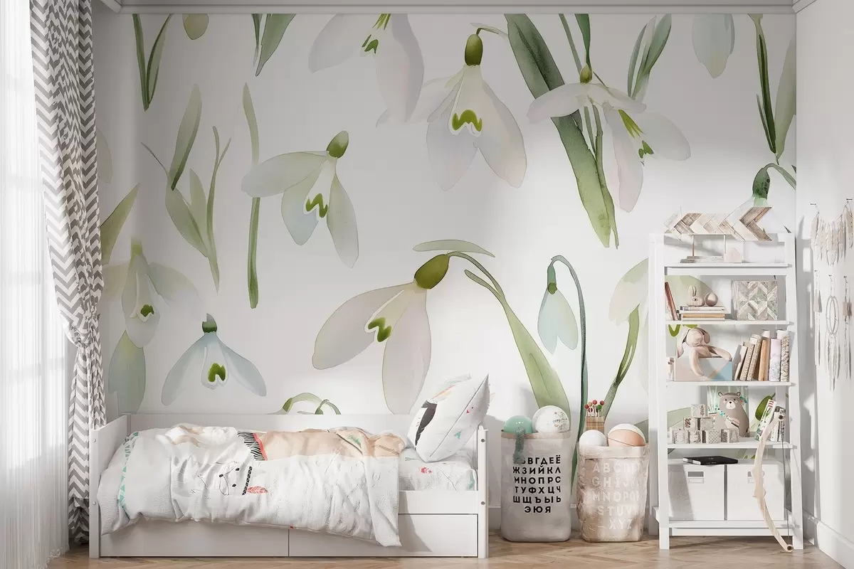 Wall murals Snowdrops flowers in watercolor style, natural colors Nr. w03754